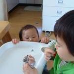 アサリを拾おうとしたら波がきた、と怖がってさっさと帰ってきました。
