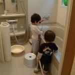 天気が悪くて外に行けないので、このまま風呂遊びすることに。