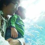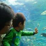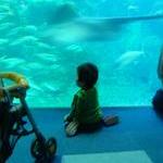 大水槽のエイに釘付け。