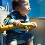 イルカに見入っています。こいつも、集中すると口が開くんだなぁ。