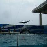 トレーナーと息の合ったジャンプ。ただ「すごい!」じゃなくて、ちゃんとイルカに興味を持てる、とてもいいショーでした。