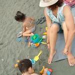 波打ち際まですら行かずに、平和にお砂遊びをする汐ちゃんと空。やれやれ。。