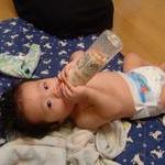 慣れないお風呂で大泣きした後は、ミルクで一服♪おつかれさま!