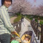 せっかく起きたので、だっこで桜並木の下を通ってみました。空ははじめての景色にキョロキョロ。
