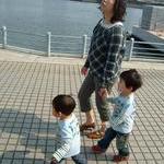 上を飛んでるカモメ見ながらお散歩。