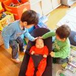 寝る前にもう一度変身したい、って真吾に直してもらってる。