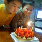 歌は10回くらい、吹き消すのは3-4回やらせていただきました。もうケーキは2人のつばだらけ。。