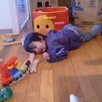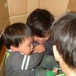 珠希さん制作の段ボールのお家でどけよどけよの大乱闘。。