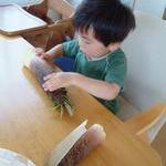 穂先の皮で怪獣の爪ごっこ。
