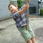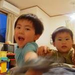 お父さんのお腹の上は恐竜パークではないぞ、キミたち。