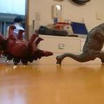 主に肉食恐竜で遊ぶ凪と主に草食恐竜で遊ぶ空。