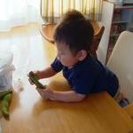昼寝から起きた瞬間に、空に「空豆むく?」って連れてこられましたw