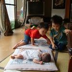 競い合って宝をかわいがってくれる空と凪。ふふふ♪