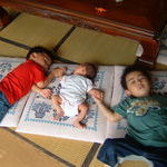 わざわざ自分たちで座布団をセッティングしてゴロリ。