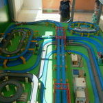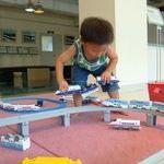 展示の横にはプラレールコーナーがあって、遊び放題!空も大興奮!!