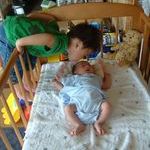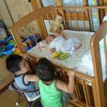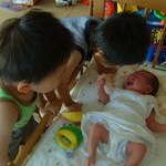 うふふ♪うふふ♪ 2007/09/09 イスを並べて宝の見学会。「ちいさいね」「かわいいね」とか言ってはうふふ♪とやっております。 あ、泣いちゃった! 2007/09/09 どぉーしたのぉー?どぉーしたのぉー?たからちゃーん! あられもないw 2007/09/09 せっかく汐ちゃんにもらったかわいいお洋服なのにはだけまくってる。。 おはようのチゥ☆ 2007/09/10 毎朝兄ちゃんにおはようのチゥされてたんだよ、って年頃になってから教えたら2人ともどんな反応するかしらw 暑いので 2007/09/10 今日は室内で。なんとボーリング!! 儀式? 2007/09/10 ゲームを始める前にへそとへそを互いにくっつける儀式を。。 さぁーやるぞぉ 2007/09/10 空は3回目だけど、凪は初めて。さて、どうなりますやら。 結局、補助つき 2007/09/10 ガーターにならない仕様にしてもらって、かつばーばの補助つき。 お、やったね! 2007/09/10 7ピンか!やったね♪ やったぁ♪やったぁ♪ 2007/09/10 嬉しさのあまり走り回っちゃってます。空いてる時間(朝イチ)に行ってよかったね。