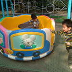 うぎぎぎ 2007/10/18 せっかく寝てる宝の後ろでレール建設&新幹線大暴走。そりゃ、泣くわな。 恐竜は昼寝中 2007/10/18 やっとアタチの静かな時間がきたわ。さぁ、メリーちゃんのオルゴール聞かせてちょうだい。(←空凪活動中は全く聞こえない) 幼稚園にきました 2007/10/19 今日は未就園児向けのイベントがあるというので来てみました。 大興奮! 2007/10/19 いつも遊びたがってる空凪のために、早めに来て園庭で遊ぶことにしたのです。 おーい! 2007/10/19 最近カメラ向けると手を振ってくれる空。どこで覚えたんだろ? ぐらぐら♪ 2007/10/19 凪がすごい勢いで揺らしておりますwあ、そうそう、これと全く同じ遊具がトモコの行ってた幼稚園にもあったっけ。 アスレチックもある 2007/10/19 園庭も広いし、遊具も難易さまざまにたくさん。それがここに決めた理由のひとつ。 問題は 2007/10/19 この人が自分も来年から幼稚園に行くんだと強く勘違いしてること。。 あ!ちょっと・・ 2007/10/19 そら、いまさ、てふれないから、まって・・て・・ ご満悦 2007/10/19 アンパンマンの形の車(名前知らない)から顔出してゴキゲン☆