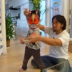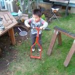仮面ライダーでんごぉ(電王) 2007/10/28 ここに来る度新たなキャラクター商品を体験して洗脳されますw 前歯抜けたの 2007/10/28 年長さんのわっくんはそろそろ生え変わりがスタート。空とたった2年しか違わないのに、この2年って大きいよね。 またしても 2007/10/28 ひとしきりいじられた後はここに来てまで放置w DIY談義 2007/10/28 子供らはわらわらと遊び、大人はDIY談義中。 芝の手入れ用品 2007/10/28 空曰く、根っこを切るやつ、だそうです。 気になる 2007/10/28 赤ちゃん好きのわっくんはちょくちょく戻って来ては宝と遊んでくれます。これはさすがにわっくんの緊張が伝わったかな。 そしてまた外へ 2007/10/28 空は全然ボールに追いつけてませんw そういやボール遊びとかあんまりしたことないもんね。 演技指導 2007/10/28 本物(テレビ)を見たことがないので、腕をこーして足をこーして、と手取り足取り教えてもらってます。 できた! 2007/10/28 俺、参上!(←決め台詞) 3階 2007/10/28 吹き抜けの2階にあるロフト。高所恐怖症のパパが設計したとは思えない高さ。