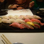 お寿司三昧〜♪まずは鰻巻き玉子の争奪戦!