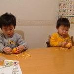 子供らは仲良くミカンでビタミンCの補給中。トモコは年賀状ラストスパートです。