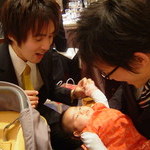 スピーチ聞き中 2007/12/22 宮武くん(左)と井上さん。井上さんもバンドの初期メンバーだったりします。 初めての共同作業♪ 2007/12/22 挙式のときよりも笑顔が出ていい感じになってきた☆ 久しぶりの再会に 2007/12/22 話も弾みます。というよりも、彼らの話を聞いてるだけで面白いw お色直し 2007/12/22 このピンクのドレスは香奈ちゃんぽいね。とってもかわいかった♪ 謎の同級生 2007/12/22 司会の方の紹介では「ゼミも一緒で職場も同僚」の彼。なのに、大学の友人テーブルで誰ひとり彼を知らない非常事態に!w 井田くんに抱っこ 2007/12/22 かーわーいー♪って言ってくれる良い人、井田くん。 ぶしっ。 2007/12/22 宮武くんも参加してむぎぎぎっと遊んでもらっております。 みんなで記念撮影 2007/12/22 新郎新婦&大学友人テーブル。宝の鼻息に負けず、笑顔のヒロシくんに乾杯☆ ところで 2007/12/22 さっきからフォアグラだのトリュフだの言ってるのに、アタチの口には入らないわけ!? 案ずるより 2007/12/22 迷ったけど、宝連れでも来てよかった。久しぶりにみんなに会えて楽しかった♪