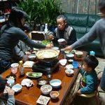 宝のお相伴でおいしい夕飯にありつく皆さん。正月早々幸せ♪