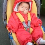 日曜朝は7時スタートの恐竜キングから始まります。とはいえ、あまりの寒さに親子カンガルー化する2人。