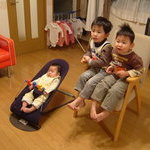 宝の背筋がだいぶしっかりしてきたので、バウンサーの角度をMAXにできるように。DVDも一緒に見れるね♪