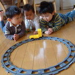 宝はこの線路&電車が大好き♪でも兄さま方の気が向かないとやってくれないので貴重なのだ。