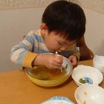 野菜のあっさり蒸しが気に入ったようでどんぶり抱え込んで食べてます。もうないじゃん。