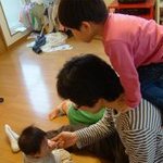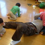 このチャレンジャーはこの後、手を離してひとりで立とうとして後ろにずっころび、真吾に危機一髪支えられました・・・