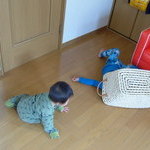 つかまれるところを模索中。んー、まずハイハイしてみませんか?
