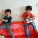 そらより(//∇//) 2008/05/09 空が幼稚園で母の日のプレゼント(メモ帳)を作って来てくれました☆ありがとう。大事に使・・えないかも。とっとくかも。 ハートのお返し 2008/05/09 空がかわいいプレゼントをくれたお礼に、今日のお昼はハートいっぱいにしたんだぁ☆ ちっちゃ!!! 2008/05/10 宝と真吾の身長差、およそ110cm!w 正座 2008/05/10 ぺたんと座ってお父さんとなにやらお話し中。 ガルルセイバー! 2008/05/10 バッシャーマグナムに続いて、ばーばよりガルルセイバーがきました!キバのおもちゃは造形が美しいね。 のびのーび 2008/05/11 砂出しのため塩水に入れといたらこーんなにリラックスしちゃってますw 凪はこのまま飼いたいみたいだけど、今晩おいしくいただきますのです。 じんじん 2008/05/11 2人でキバの劇中に流れる曲をPVに合わせて演奏中。凪のシャウトがRockなんだぜぇぇぇ!!! 選手交代 2008/05/11 空はアイドルの香りがするね。凪のコーラスのほうがRockなんだぜぇぇぇ!!!!w 母の日の花屋 2008/05/11 いつもどおり空凪だけでおつかい、と思ったら激混み。でもムリヤリおつかい完了したのでした。お花屋さん、ご迷惑かけてすみません。。 母の日パーティー 2008/05/11 みんなが好きそうで手がかからないもの(←母の日だから母は手抜きしちゃうのだ!)でパーティー☆