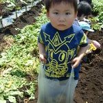 大好きなお兄さんを連れ回して畑を探検する凪。ナスの「な」は凪の「な」って言ってる(はず)。