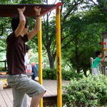 地面まであと2cm!下につかないように渡る、っていう斬新なアスレチックw