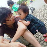町内会館の脇にある空き地で虫探し。今日の凪は女の子たちともいっぱい遊べました♪楽しかったね☆