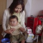 授乳シーン。私、ずいぶんガニ股だなぁ。