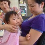 凪にも入刀。頭の形が非常に特殊なのでベテランのおじいちゃんがアドバイス中。