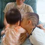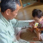 人見知りの宝とやっと交流をもてた、じーじ感動の一瞬。ま、来月にはもう少し慣れてくれるわよ。