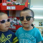 散髪帰りに子供服屋さんに寄り道。サングラス大会になりました。