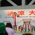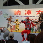 司会のおねーさん登場でいよいよゴーオンジャーショーが始まります♪最初にお約束などの確認中。