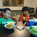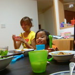 楽しくて話したくて遊びたくて空はご飯に手がつきません。ま、仕方ないか、久しぶりだもんね。