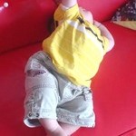 ではなくて、オムツを替えてもらっているところ。リラックスポーズにしては複雑じゃないか?