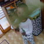 ほうきで遊んでないで着替えなさいってば。出かける時間になっちゃうよ。