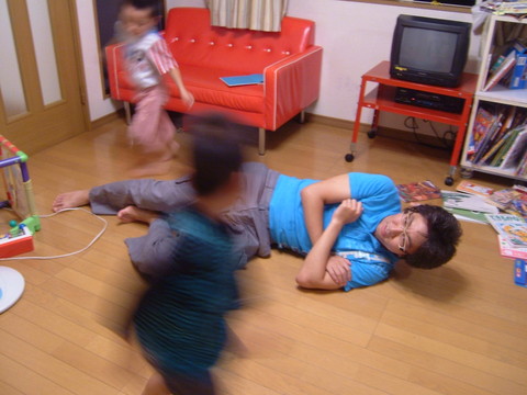 あれだけ遊んで、夕飯後まだ全速力で回ってます。