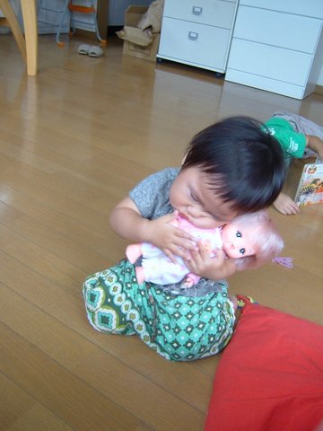 顔がひしゃげるほどの全力でだっこ。