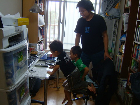 おじいちゃんちに遊びにきたら、おばあちゃんお風呂中につき、貴史の部屋で待ってるところ。