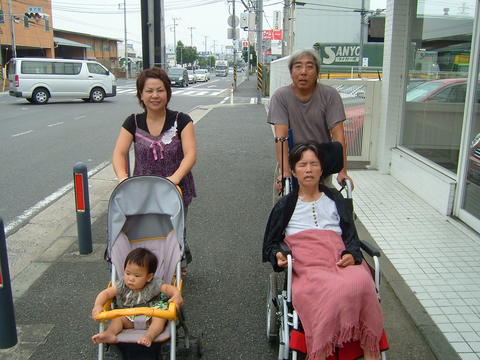 おばあちゃんの車いすはヘッドレストやティルト機能(椅子がそのまま後ろに傾く)がついてます。