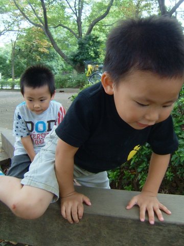 腹もこなれてきて再びアスレチックへ。膝とかすりむいててもこの際気にしない!