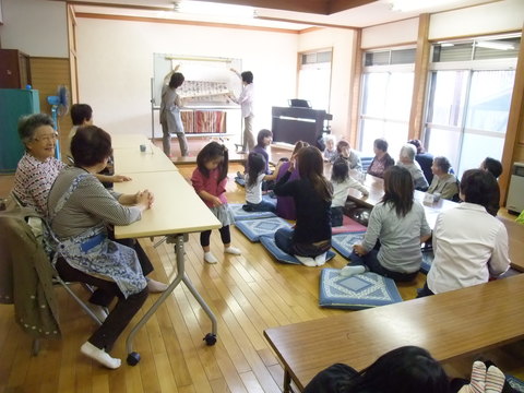 今日はつみきと地域のお年寄りの方々との交流会。子供らはやや緊張気味。
